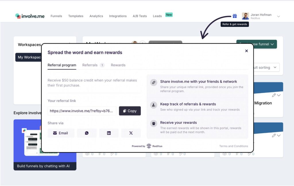 Before using Reditus, involve.me ran their affiliate program on Rewardful. While it handled basic referral tracking, it lacked the scalability, automation, and network growth engine they needed.